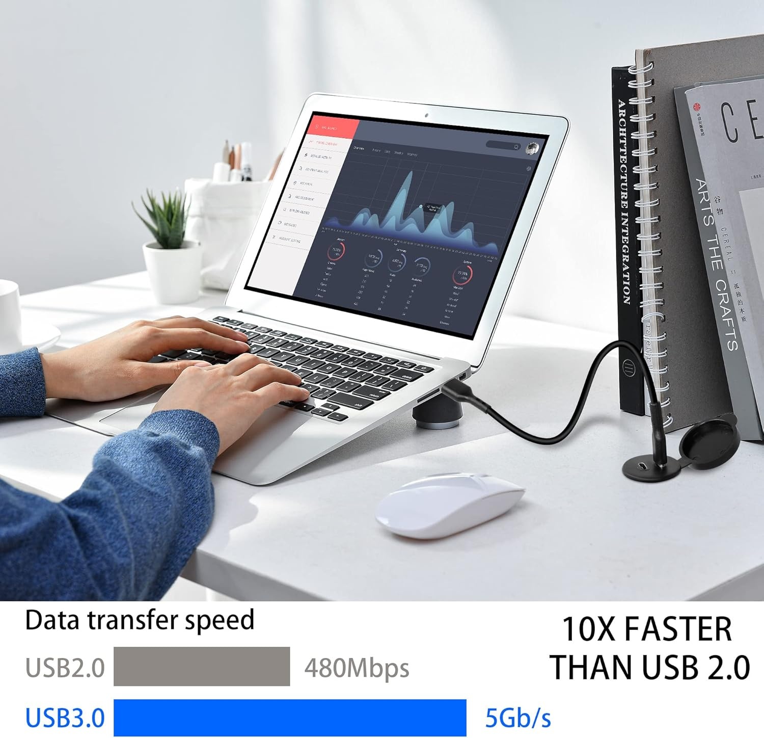 Deze QIANRENON dual USB-C flush mount kabeladapter biedt een betrouwbare oplossing voor het creëren van vaste USB-aansluitingen in panelen en behuizingen. De adapter is voorzien van twee USB-C poorten aan de buitenzijde en een USB 3.0 (USB-A) aansluiting aan de achterzijde, waardoor apparaten eenvoudig kunnen worden aangesloten voor opladen en data-overdracht.