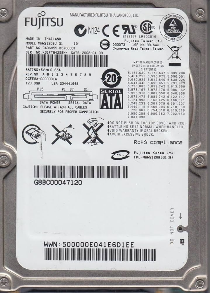 Fujitsu 120GB 2.5" Interne Harde Schijf – SATA – Compact & Betrouwbaar – Ideaal voor Laptop, DVR & Basisopslag