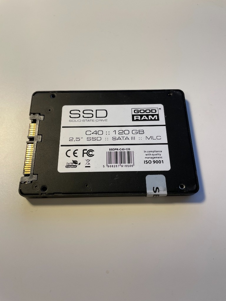 120GB Goodram C40 in een 2,5" SATA SSD behuizing van 7 mm hoogte. Geen bewegende onderdelen; snelle opstarttijden en responsieve applicaties. Interface: SATA III (6 Gb/s); 512e-indeling en NCQ. Cache: circa 128 MB. NAND-type: