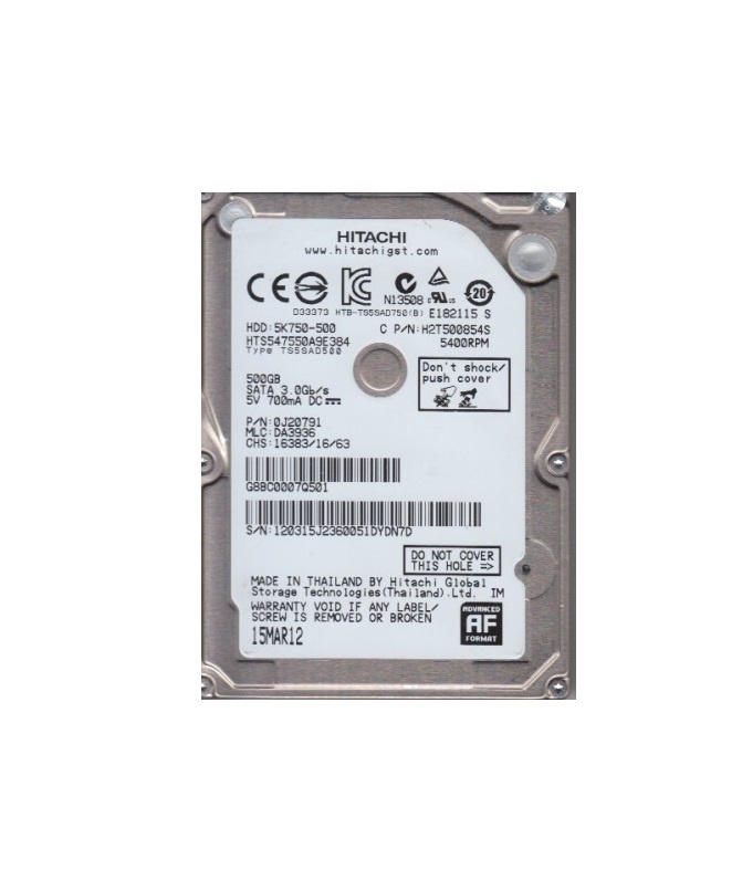 - Verpakking: 1x Hitachi 5K750-500 500GB 2.5" SATA HDD