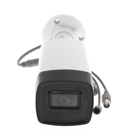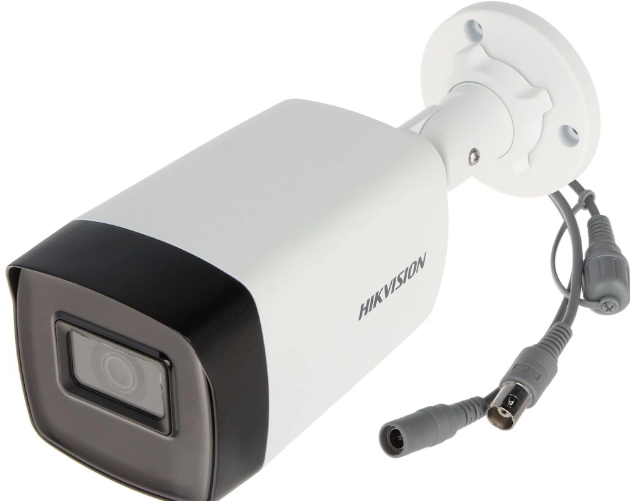 5MP bulletcamera met vaste lens (2.8 mm, 3.6 mm of 6 mm), ingebouwde microfoon, 40 m IR-nachtzicht en ondersteuning voor TVI/AHD/CVI/CVBS. Weerbestendig (IP67) en geschikt voor buitengebruik.