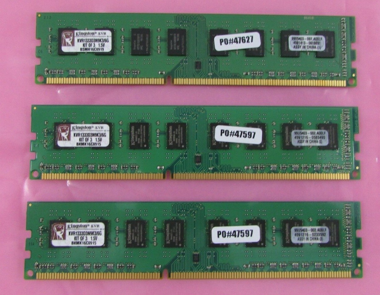 De Kingston KVR1333D3N9K3/6G is een betrouwbare 6GB DDR3 1333MHz DIMM geheugenkit, bestaande uit drie modules van elk 2GB, ontworpen voor desktopcomputers die DDR3-geheugen ondersteunen. Met drie identieke modules kun je profiteren van betere geheugendoorvoer en vloeiendere systeemprestaties dan met losse losse modules.