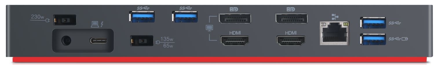 - Video-uitgangen: 2x DisplayPort, 1x HDMI, 1x VGA, 1x Thunderbolt 3 (USB-C) downstream
