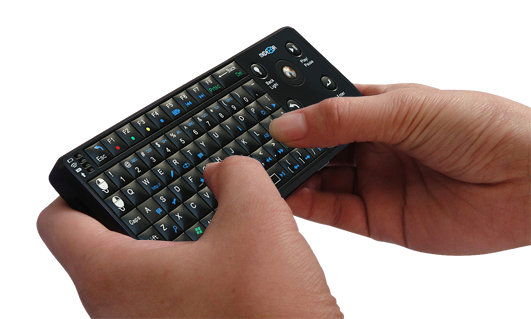 All-in-one design: toetsenbord en muis geïntegreerd in één compacte controller.