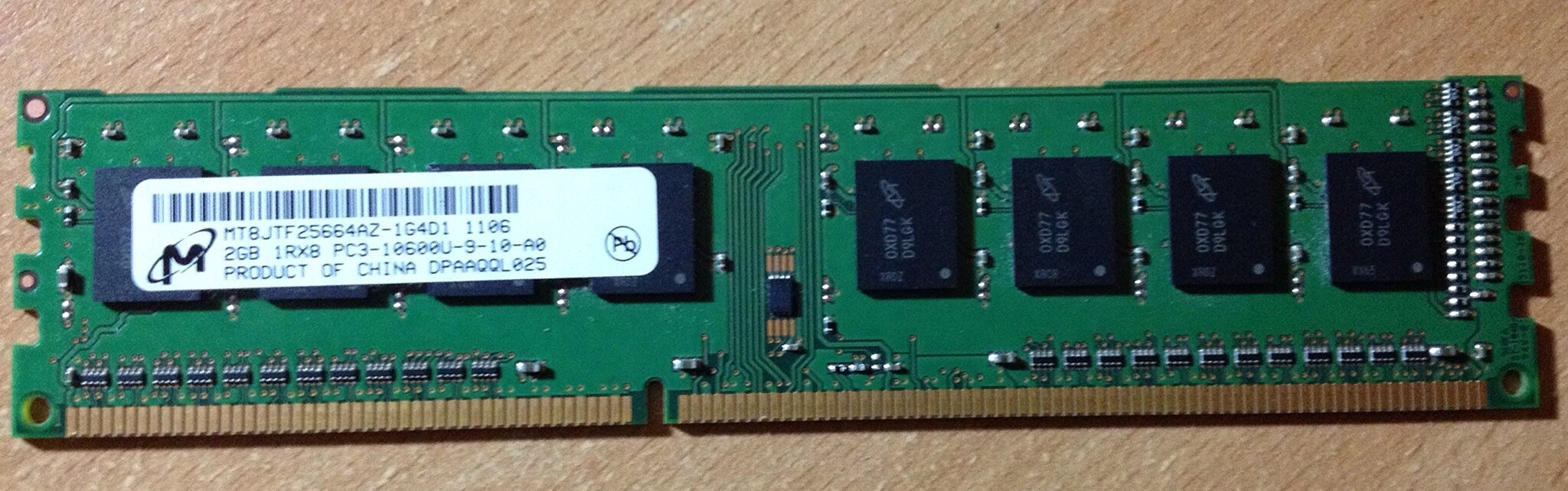 Micron 2GB DDR3 1333MHz DIMM geheugenmodule (PC3-10600U, 1Rx8, 1.5V). Geschikt voor stabiele desktop-upgrades en oudere systemen.