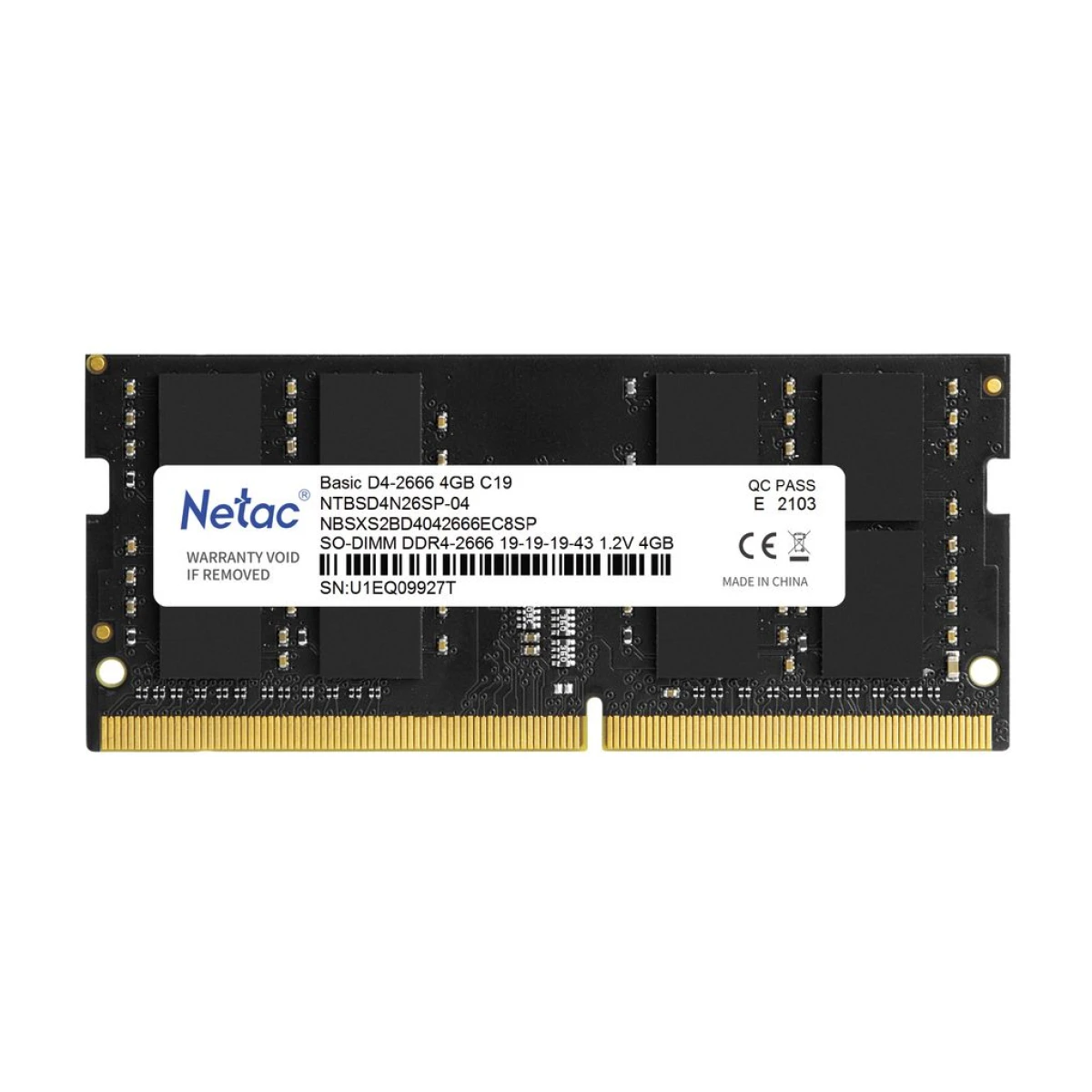 - 1 × Netac 4GB DDR4 2666 MHz SODIMM geheugenmodule