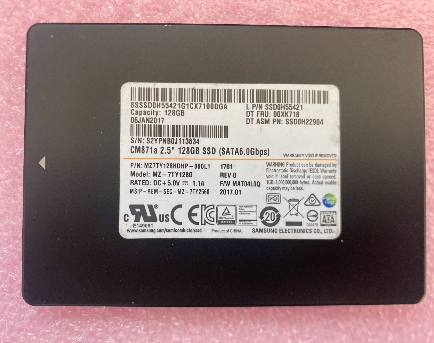 - Verpakking: 1x Samsung MZ-7TY1280 128GB 2.5" SATA SSD