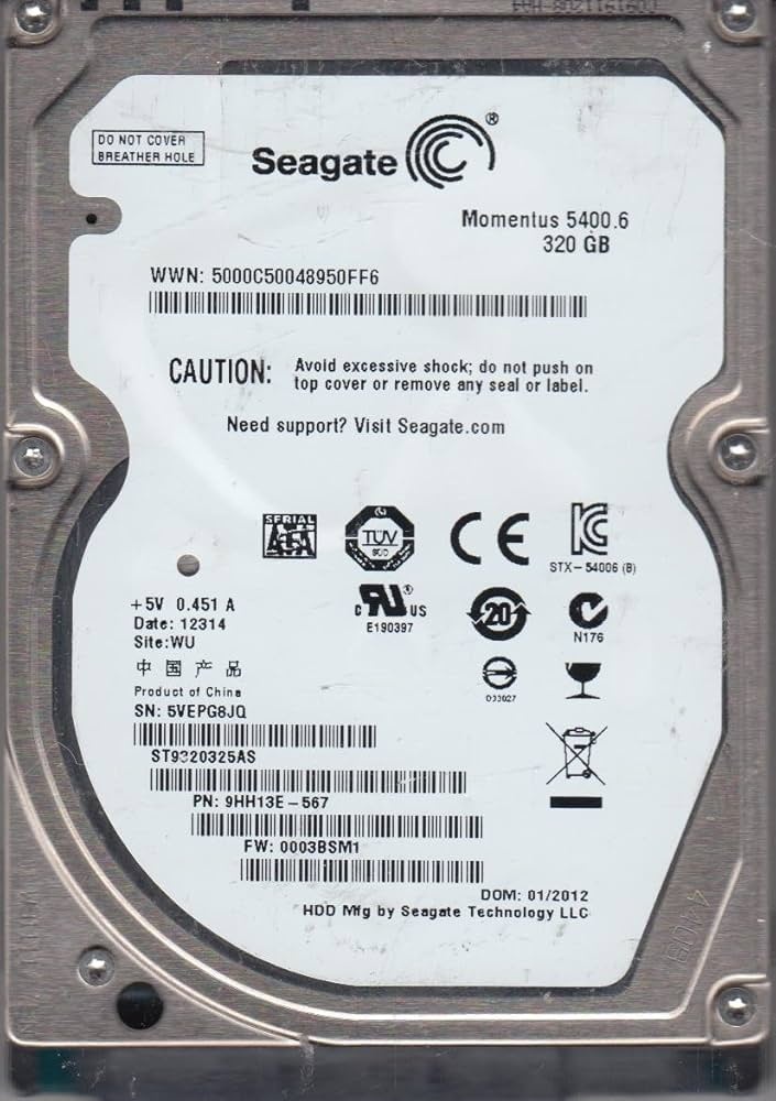 Seagate 320GB 2.5" Interne Harde Schijf – SATA – Betrouwbaar & Energiezuinig – Ideaal voor Laptop & Externe Opslag