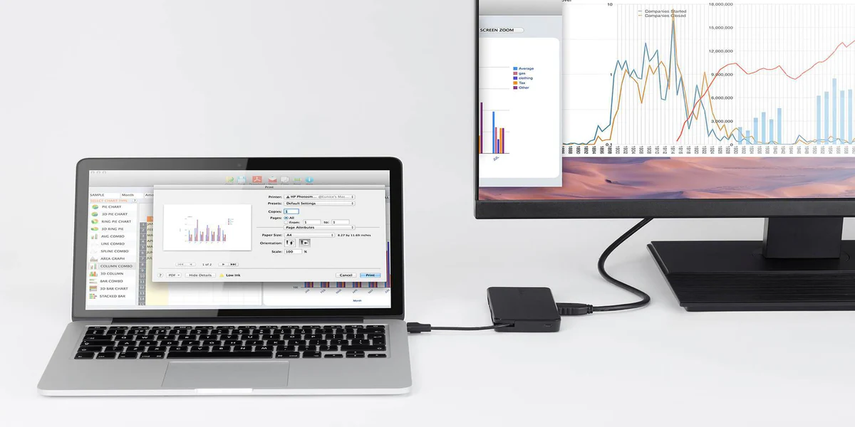 Dankzij de DisplayLink-technologie sluit je meerdere monitoren aan via één USB-verbinding, zonder dat je laptop een speciale videopoort nodig heeft. Dit maakt de dock geschikt voor vrijwel alle laptops met USB 3.0.
