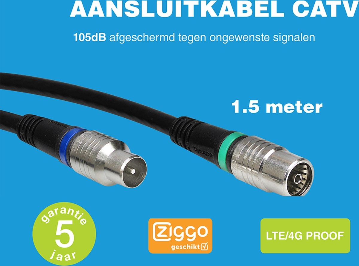 - 1 × Technetix RLA++10 4G/LTE Proof Coaxkabel (1,5 meter)