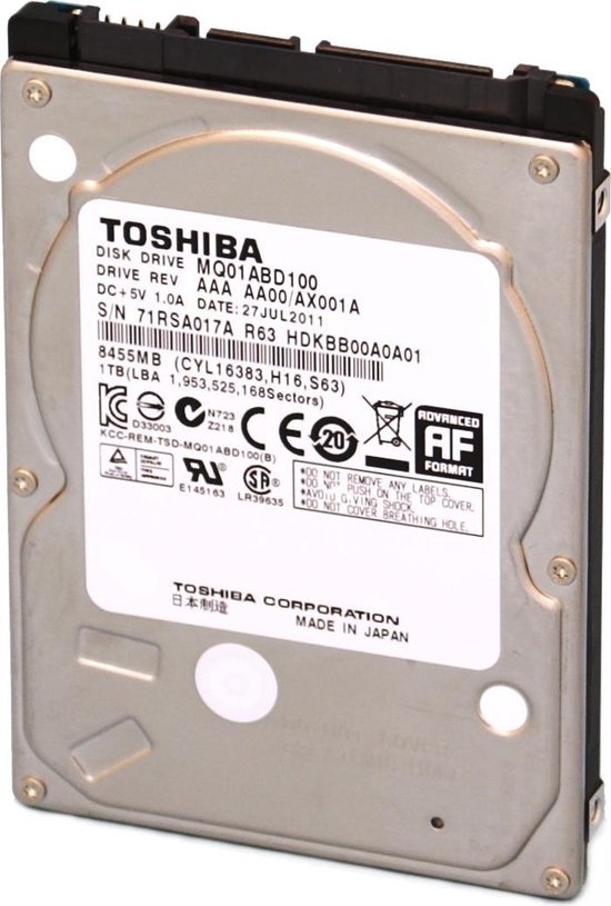 De Toshiba 750GB 2.5" interne harde schijf is een compacte en duurzame opslagoplossing die perfect geschikt is voor het upgraden of repareren van laptops, mini-pc’s en DVR-systemen.