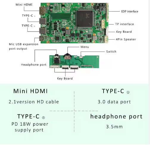 LCD controller board met HDMI 2.0 en USB Type-C ingang, compatibel met 15,6 inch 3840x2160 eDP-schermen zoals de NV156QUM-N44 en NV156QUM-N32. Ondersteunt 4K @60Hz, ideaal voor DIY-monitoren, industriële toepassingen en embedded systemen.