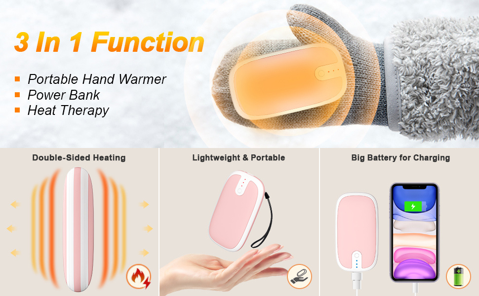 Zazitec 10000mAh, USB-C Powerbank - Roze - Handwarmer