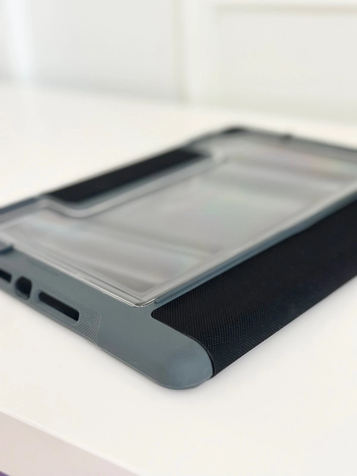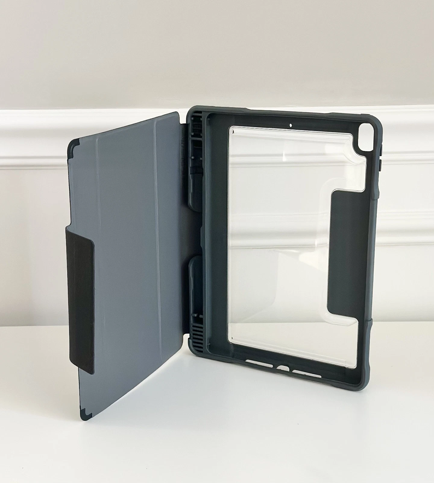 De stevige, transparante achterkant van hoogwaardig polycarbonaat voorkomt krassen, barsten en andere beschadigingen zonder het design van je iPad te verbergen. De zachte rand biedt extra schokabsorptie bij stoten en vallen, zodat je iPad langer meegaat.
